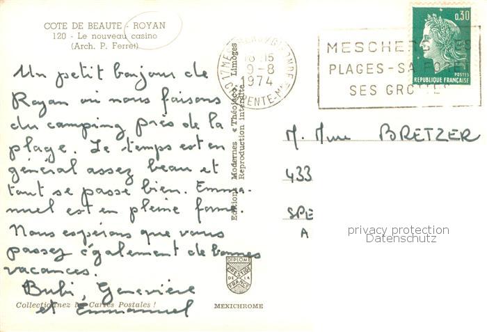 13775281 Royan 17 Le nouveau Casino postalisch gelaufen Erhaltung siehe scans [WerneD78] carte postale Wern Katcode 11170017386194
