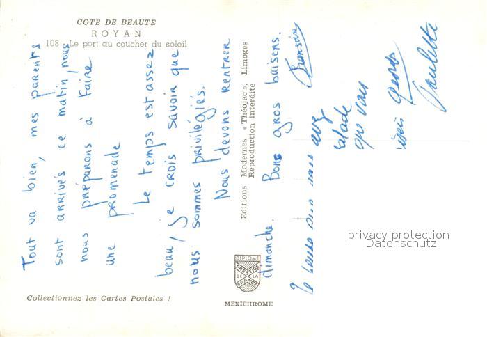 13583244 Royan 17 Le port au coucher du soleil postalisch nicht gelaufen Erhaltung siehe scans [WerneD78] Wern Katcode 11170017386194