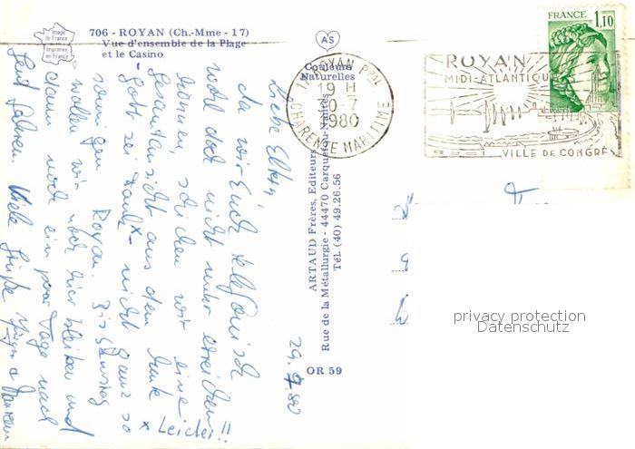 12619235 carte postale Royan 17 Vue d ensemble de la Plage et le Casino vue aerienne postalisch gelaufen Erhaltung siehe scans [FriedD77] KatCode: 11170017386194