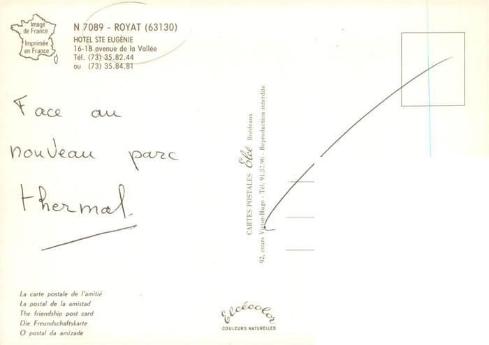 13946530 Royat 63-les-Bains Hotel Ste Eugenie Gastraum Zimmer postalisch nicht gelaufen Erhaltung siehe scans [WerneD78] Wern Katcode 11170063263308