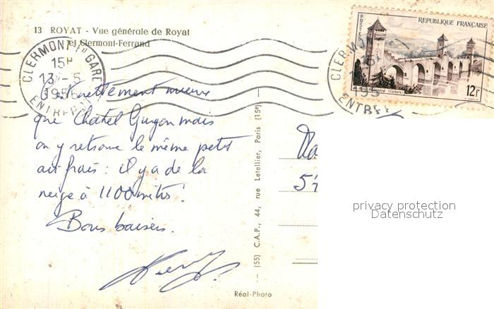 12932722 carte postale Royat les Bains Fliegeraufnahme postalisch gelaufen Erhaltung siehe scans [AndreD76] KatCode: 11170063263308