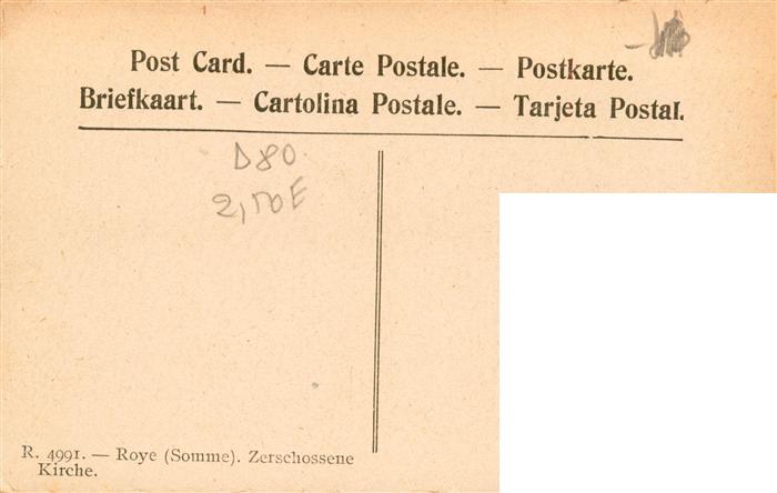 13943704 Roye 80 Somme Eglise en ruines postalisch nicht gelaufen Erhaltung siehe scans [WerneD78] Wern Katcode 11170080380685