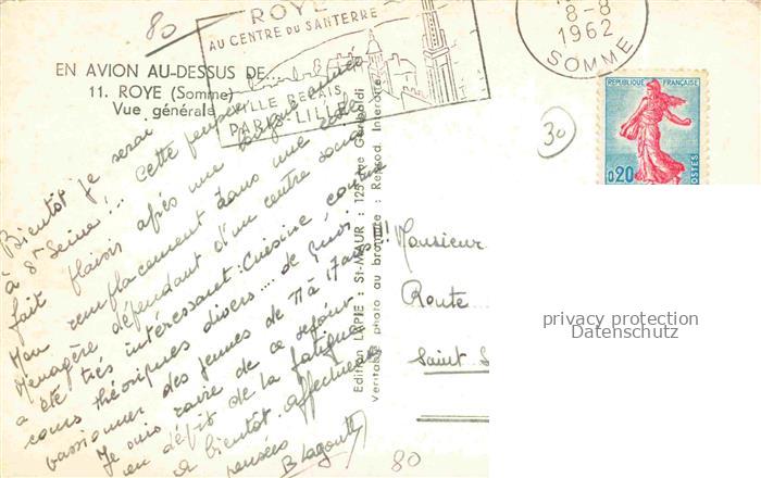 14114475 Roye Montdidier 80 Somme Vue générale aérienne postalisch gelaufen Fliegeraufnahme Erhaltung siehe scans [FriedD77] Fliegeraufnahme carte postale Frie Katcode 11170080380685