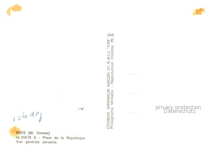 13049555 Roye Somme Place de la Republique Fliegeraufnahme postalisch nicht gelaufen Erhaltung siehe scans [NatalD47] KatCode: 11170080380685