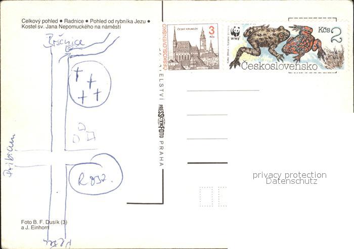 old postcard Rozmital Rozmitalu Celkovy pohled Radnice Rybnika Jezu Kostel sv Jana Nepomuckeho na namesti postalisch gelaufen Erhaltung siehe scans