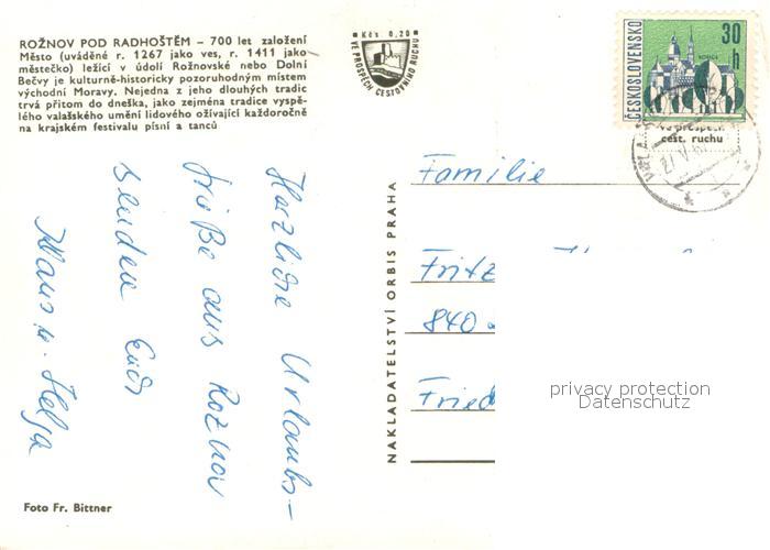 old postcard Roznov pod Radhostem Mestolezici v udoli Roznovske nebo Dolni Becvy je kulturne historicky pozoruhdnym mistem vychodni Moravy postalisch gelaufen Erhaltung siehe scans [WerneD78]