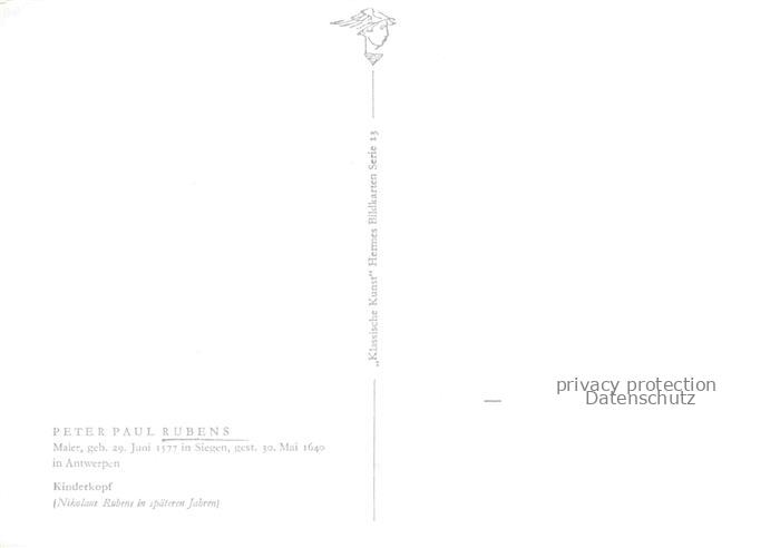 74091723 RUBENS Paul-Peter Pierre-Paul (1577-1640) Kuenstlerkarte Kinderkopf Nikolaus in spaeteren Jahren postalisch nicht gelaufen Erhaltung siehe scans [SanaeD93] KatCode: 22240000003200