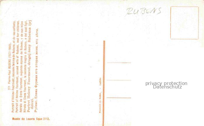 RUBENS Paul-Peter Pierre-Paul Kuenstlerkarte Portraet von Heleny Fourment und ih