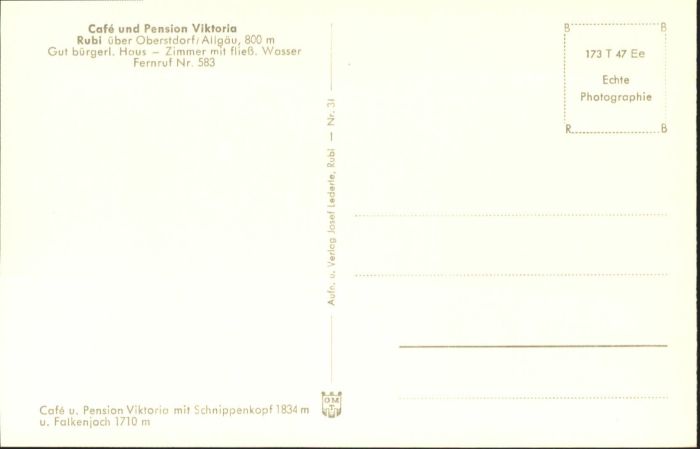40807076 Rubi Allgäu Oberstdorf Cafe Pension Viktoria KatCode 11110009780133