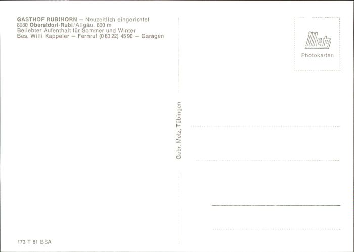 40807084 Rubi Oberstdorf Allgäu Gasthof Rubihorn KatCode 11110009780133