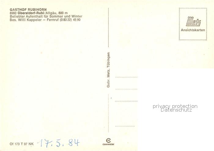 73170629 Rubi Oberstdorf Gasthof Rubihorn postalisch nicht gelaufen Erhaltung siehe scans [PaolaD17] KatCode: 11110009780133