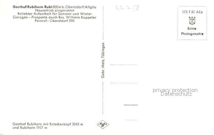 73801445 Rubi Oberstdorf Gasthof Rubihorn postalisch nicht gelaufen Erhaltung siehe scans [WerneD78] KatCode: 11110009780133