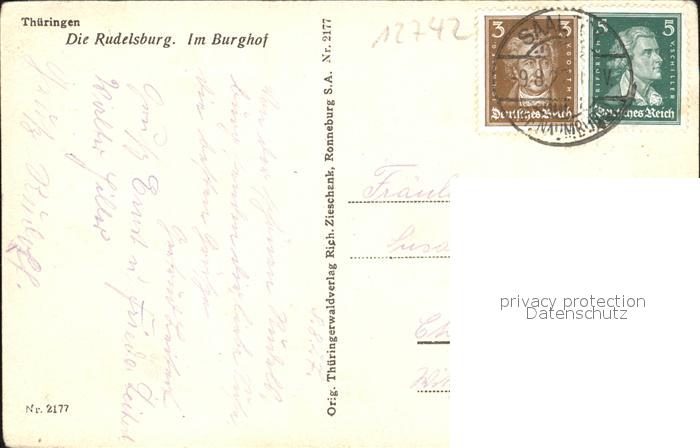 alte Postkarte Rudelsburg Burghof postalisch gelaufen Erhaltung siehe scans