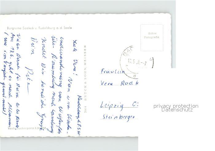72391080 alte Postkarte Rudelsburg Burgruine Saaleck postalisch gelaufen Erhaltung siehe scans KatCode: 11110015084020