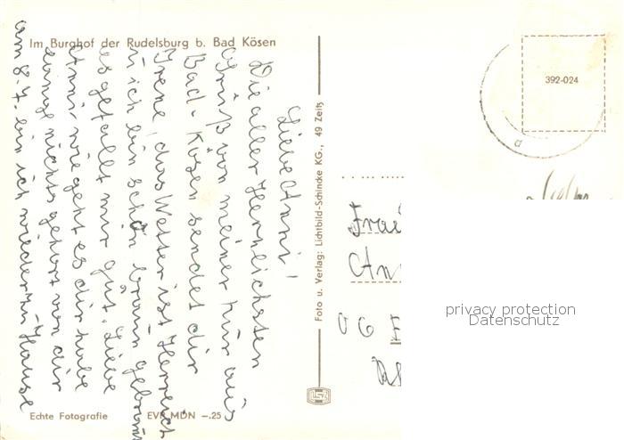 73771678 alte Postkarte Rudelsburg Im Burghof Terrasse postalisch gelaufen Erhaltung siehe scans [LiesaD40] KatCode: 11110015084020