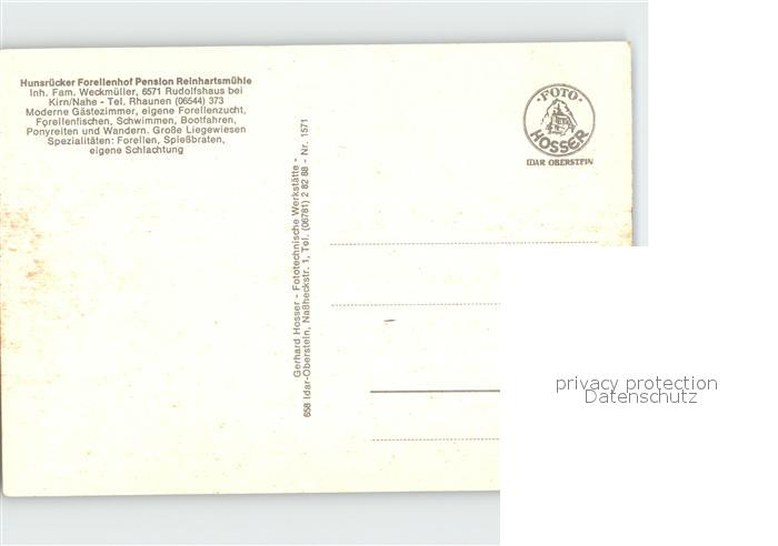 72256865 Rudolfshausen Nahe Hunsruecker Forellenhof Pension Reinhartsmuehle postalisch nicht gelaufen Erhaltung siehe scans KatCode: 11110007133052
