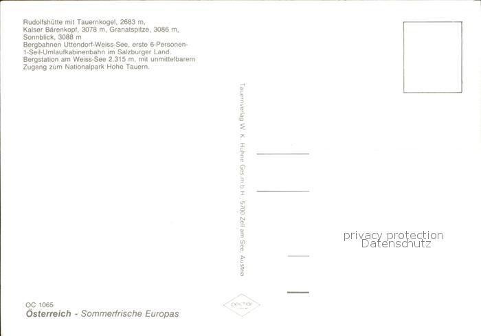 72312519 Rudolfshuette Weisssee Alpinzentrum Bergbahnen Uttendorf Weiss See Bergstation postalisch nicht gelaufen Erhaltung siehe scans KatCode:
