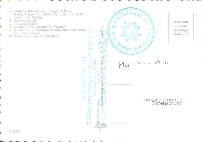 72033941 Rudolfshuette Weisssee am Weisssee Alpenvereinshuette Hohe Tauern Seilbahn Wappen postalisch nicht gelaufen Erhaltung siehe scans KatCode: