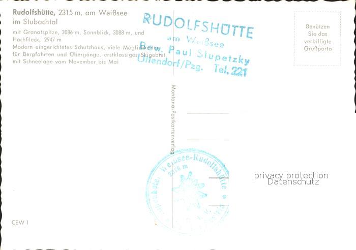 72037931 Rudolfshuette Weisssee am Weisssee im Stubachtal mit Granatspitze postalisch nicht gelaufen Erhaltung siehe scans KatCode: