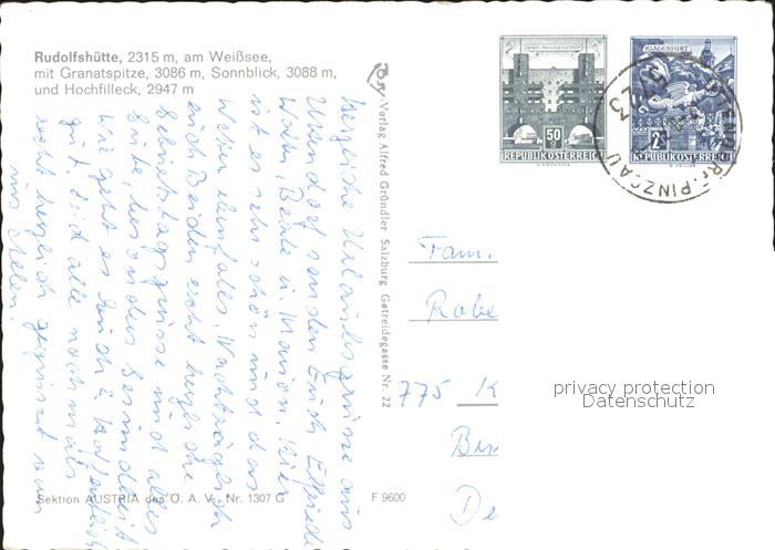 72179931 alte Postkarte Rudolfshuette Weisssee Granatspitze Sonnblick Hochfilleck postalisch gelaufen Erhaltung siehe scans KatCode: