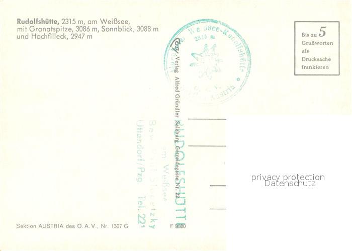 73656064 Rudolfshuette Weisssee mit Granatspitze Sonnblick und Hochfilleck postalisch nicht gelaufen Erhaltung siehe scans [WerneD78] KatCode: