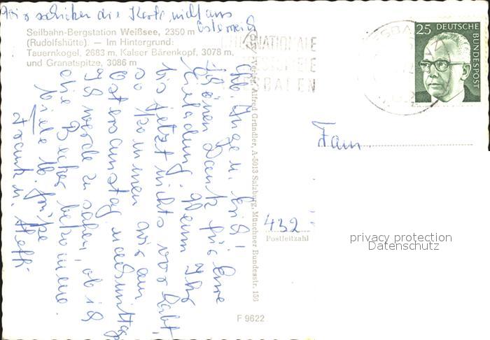 72425064 alte Postkarte Rudolfshuette Weisssee Seilbahn Bergstation Weisssee Tauernkogel postalisch gelaufen Erhaltung siehe scans KatCode: