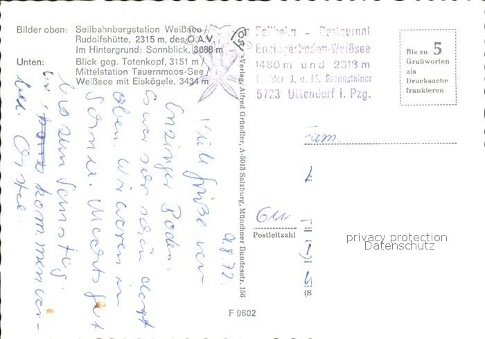72245044 Rudolfshuette Weisssee Seilbahnbergstation Weisssee Totenkopf Eiskoegele postalisch nicht gelaufen Erhaltung siehe scans KatCode: