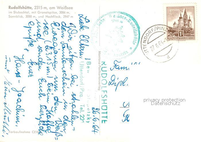 73268778 alte Postkarte Rudolfshuette Weisssee Stubachtal Granatspitze Sonnblick Hochfleck postalisch gelaufen Erhaltung siehe scans [KathaD81] KatCode: