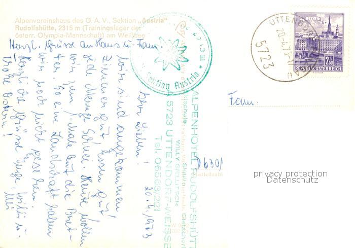 73228773 alte Postkarte Rudolfshuette Weisssee Trainingslager der oesterreich. Olympiamannschaft Winterpanorama Weisssee Alpen Fliegeraufnahme postalisch gelaufen Erhaltung siehe scans [FriedD77] KatCode: