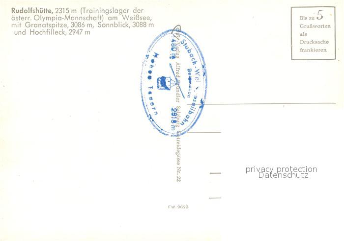73043517 Rudolfshuette Weisssee Trainingslager der oesterreichischen Olympia Mannschaft am Weisssee Winterpanorama Alpen postalisch nicht gelaufen Erhaltung siehe scans [FriedD77] KatCode: