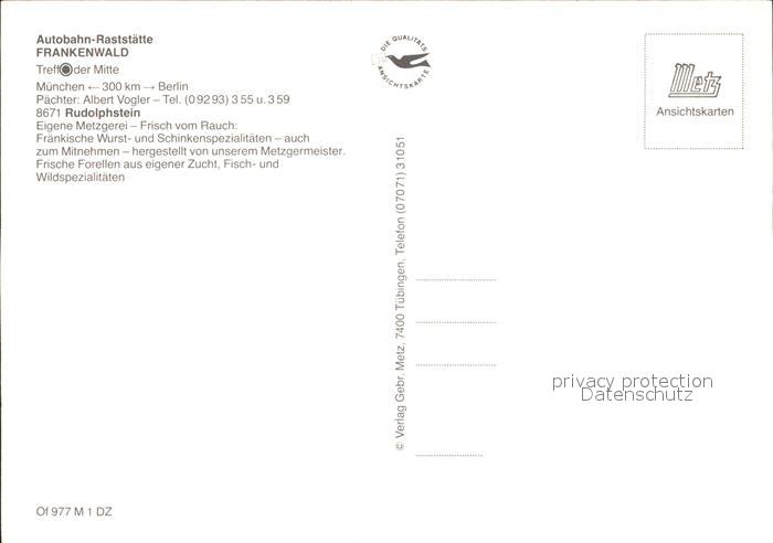 71991714 Rudolphstein Autobahn Rasstaette Frankenwald postalisch nicht gelaufen Erhaltung siehe scans KatCode: 11110009475113