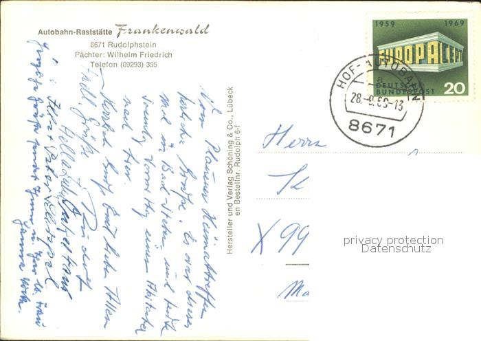 72133004 alte Postkarte Rudolphstein Autobahn Raststaette Frankenwald postalisch gelaufen Erhaltung siehe scans KatCode: 11110009475113