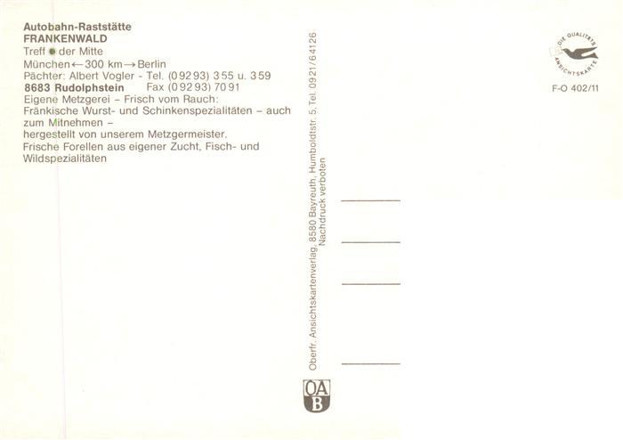 73946680 Rudolphstein Brueckenrasthaus Frankenwald AUtobahn-Raststaette postalisch nicht gelaufen Erhaltung siehe scans [FriedD77] KatCode: 11110009475113
