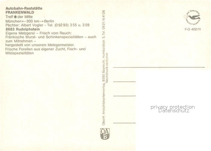 73619950 Rudolphstein Brueckenrasthaus Frankenwald postalisch nicht gelaufen Erhaltung siehe scans [WerneD78] KatCode: 11110009475113