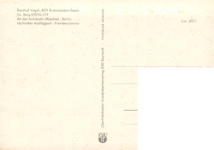 73902153 Rudolphstein Gasthaus Vogel Gaststube Panorama postalisch nicht gelaufen Erhaltung siehe scans [WerneD78] KatCode: 11110009475113