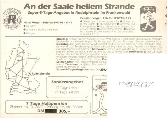 73121194 Rudolphstein Gastho Vogel postalisch nicht gelaufen Werbekarte (keine Postkarte) Erhaltung siehe scans [LiesaD40] KatCode: 11110009475113