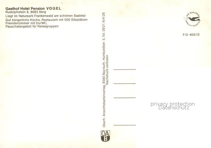 73780159 Rudolphstein Gasthof Hotel Pension Vogel im Naturpark Frankenwald postalisch nicht gelaufen Erhaltung siehe scans [FriedD77] KatCode: 11110009475113