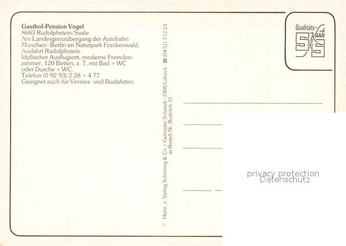 73645715 Rudolphstein Gasthof Pension Vogel Restaurant Naturpark Frankenwald Saaletal postalisch nicht gelaufen Erhaltung siehe scans [FriedD77] KatCode: 11110009475113