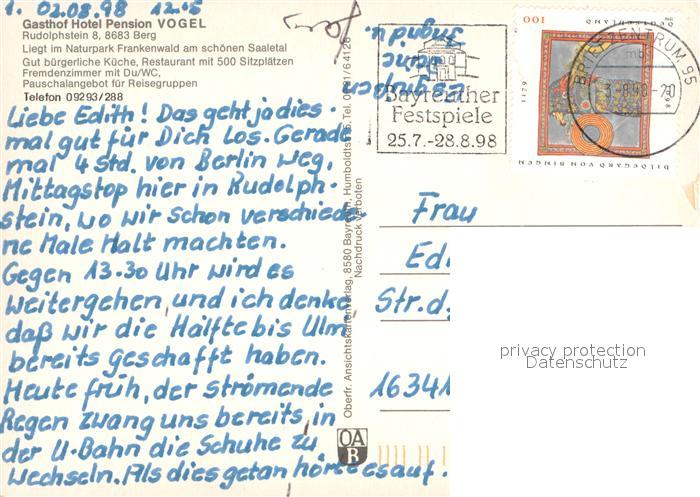73653342 alte Postkarte Rudolphstein Gasthof Vogel postalisch gelaufen Erhaltung siehe scans [WerneD78] KatCode: 11110009475113