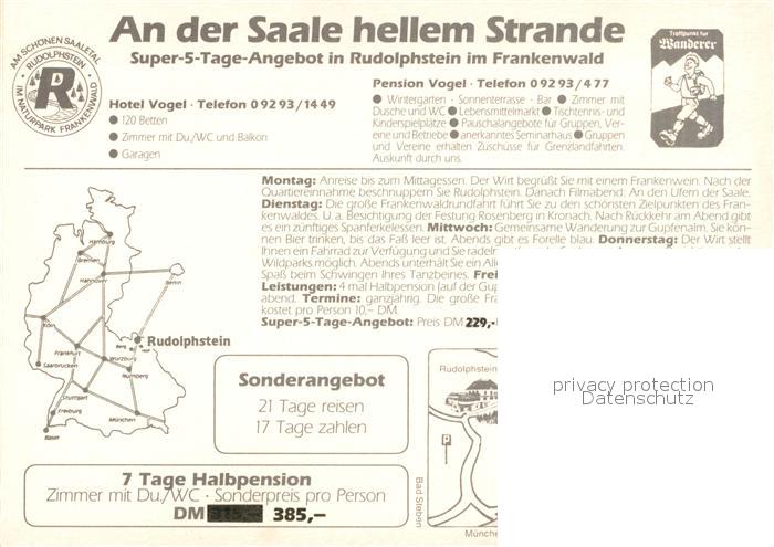 73118024 Rudolphstein Gasthof Vogel postalisch nicht gelaufen Werbekarte (keine Postkarte) Erhaltung siehe scans [KathaD81] KatCode: 11110009475113