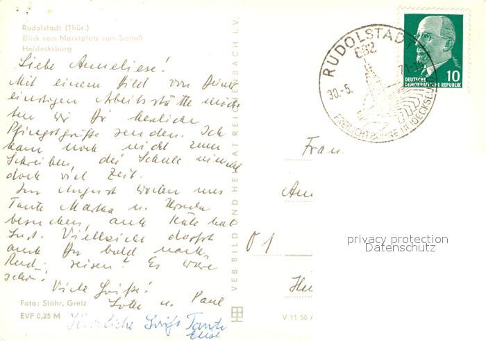 72952582 alte Postkarte Rudolstadt Blick vom Marktplatz zum Schloss Heidecksburg postalisch gelaufen Erhaltung siehe scans [FriedD77] KatCode: 11110016073076