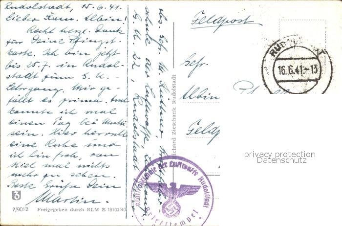 72007962 alte Postkarte Rudolstadt Blick von Hain NZ3 postalisch gelaufen Feldpost Erhaltung siehe scans KatCode: 11110016073076