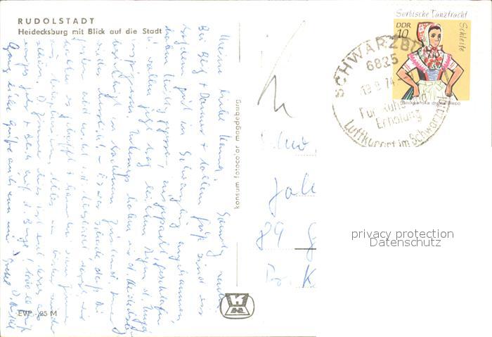 71930404 alte Postkarte Rudolstadt Heidecksburg Blick auf die Stadt postalisch gelaufen Erhaltung siehe scans KatCode: 11110016073076