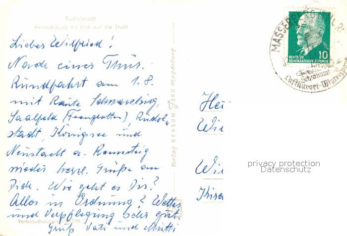72703470 alte Postkarte Rudolstadt Heidecksburg mit Blick auf die Stadt postalisch gelaufen Erhaltung siehe scans [FriedD77] KatCode: 11110016073076