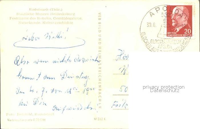 72185330 alte Postkarte Rudolstadt Heidecksburg Museum postalisch gelaufen Erhaltung siehe scans KatCode: 11110016073076