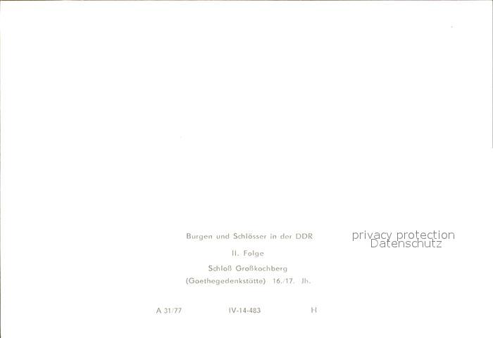 72182374 Rudolstadt Schloss Grosskochberg Goethe Gedenkstaette postalisch nicht gelaufen Erhaltung siehe scans KatCode: 11110016073076
