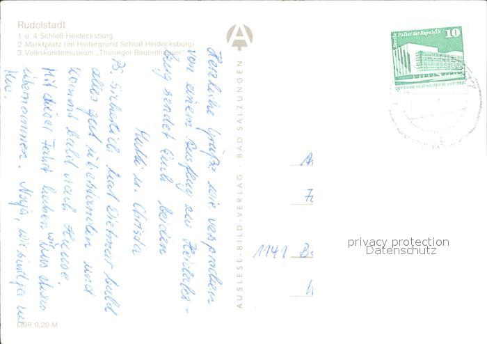72261957 alte Postkarte Rudolstadt Schloss Heidecksberg Marktplatz Volkskundemuseum Thueringer Bauernhaeuser postalisch gelaufen Erhaltung siehe scans KatCode: 11110016073076