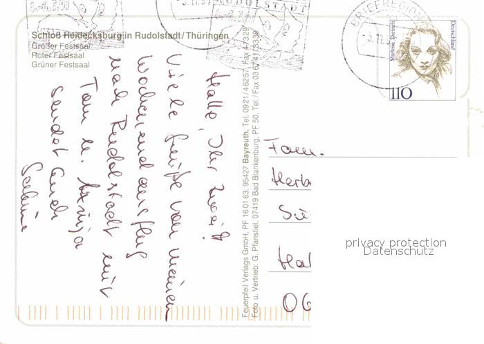72640436 alte Postkarte Rudolstadt Schloss Heidecksburg Grosser Festsaal Roter Festsaal Gruener Festsaal postalisch gelaufen Erhaltung siehe scans [FriedD77] KatCode: 11110016073076