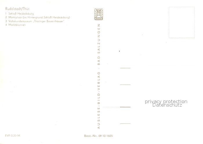 73015312 Rudolstadt Schloss Heidecksburg Marktplatz Volkskundemusem Thueringer Bauernhaeuser Marktbrunnen postalisch nicht gelaufen Erhaltung siehe scans [WerneD78] KatCode: 11110016073076