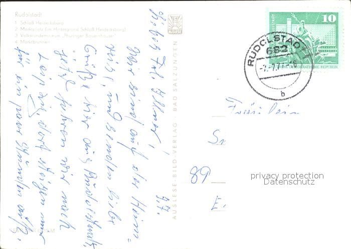 72323457 alte Postkarte Rudolstadt Schloss Heidecksburg Marktplatz Volkskundemuseum Marktbrunnen postalisch gelaufen Erhaltung siehe scans KatCode: 11110016073076